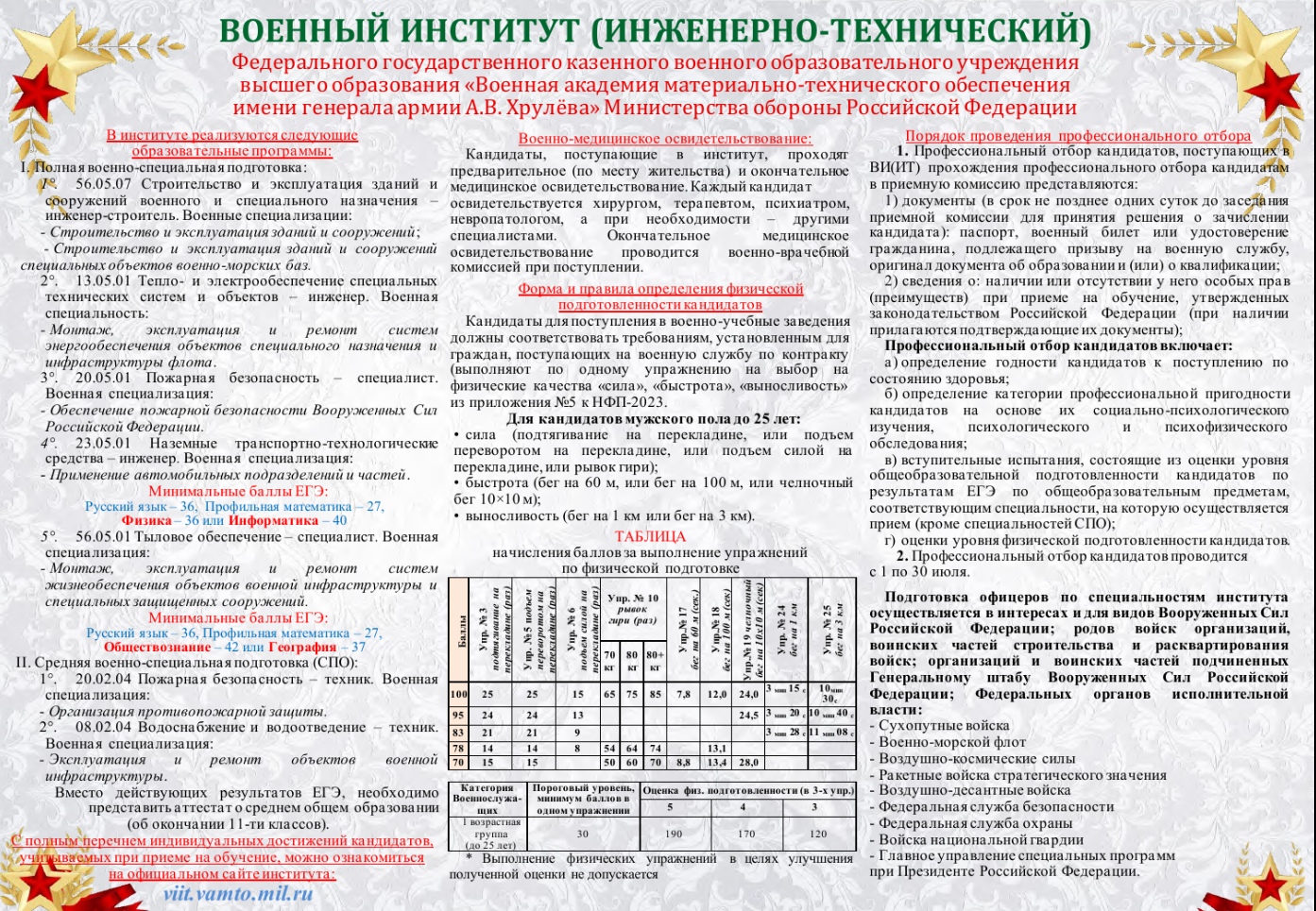 Поступление в Военную академию материально - технического обеспечения им. генерала армии А.В. Хрулева