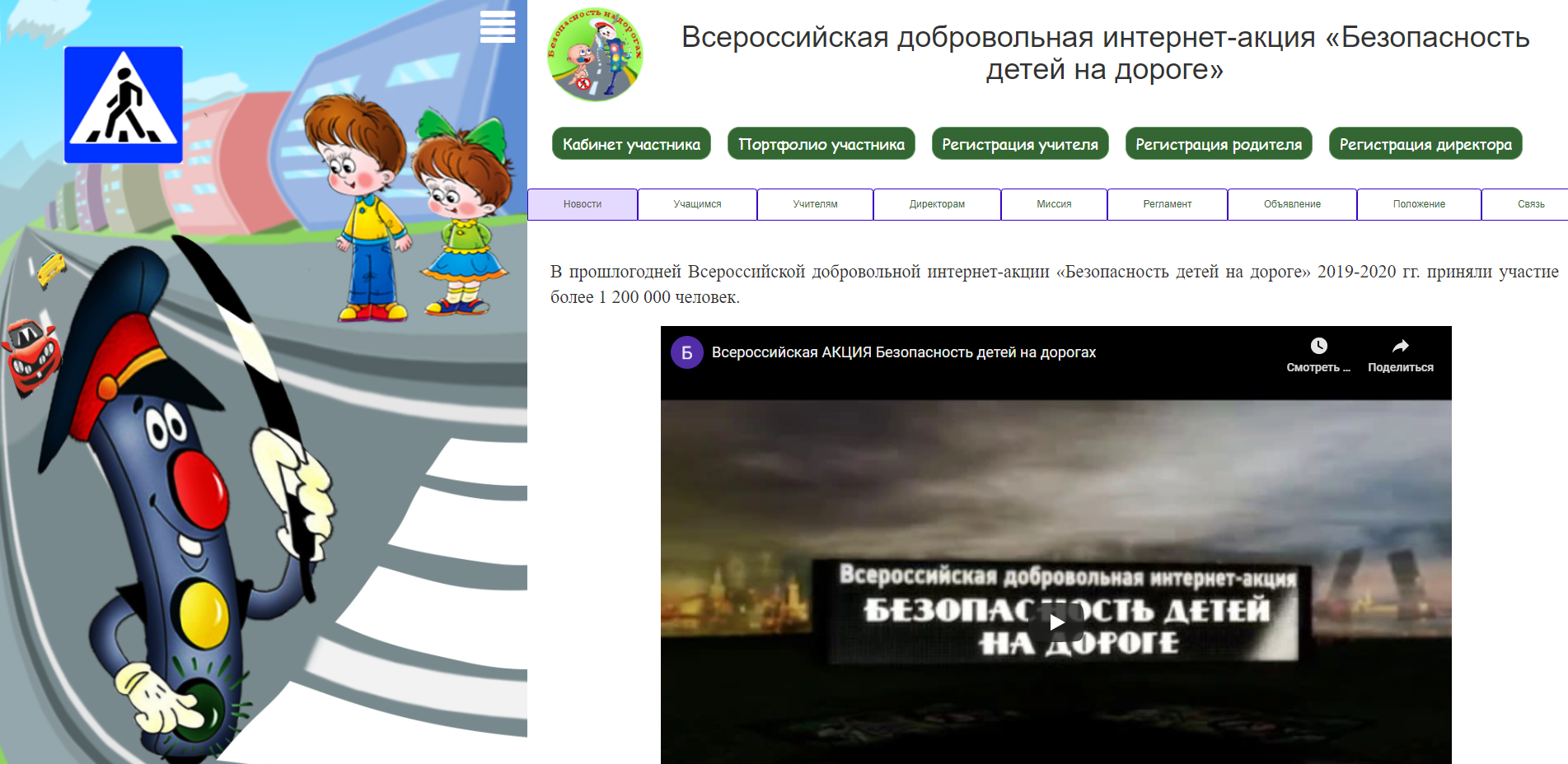 Страница "Дорожная безопасность" имеет две дополнительные вкладки: (переход осуществляется через основное меню и по ссылкам)
