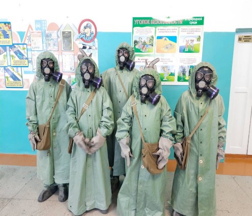 Апрель 2022 года. Открытый урок ОБЖ. Учимся надевать ОЗК. ВПК "Русич"