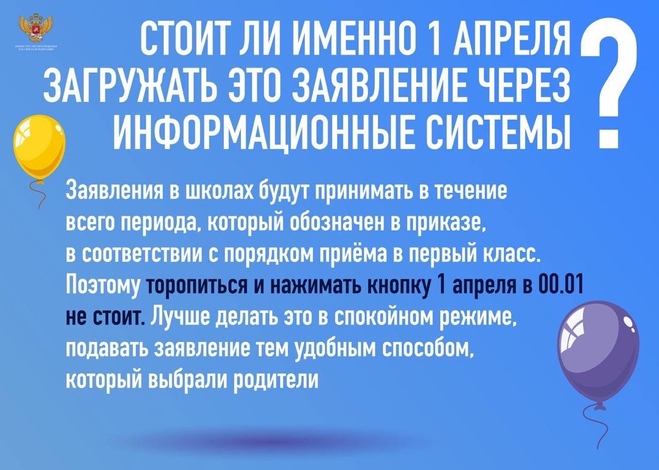 Родителям первоклассников: заявления на поступление в 1 класс принимаются с 1 апреля текущего года!